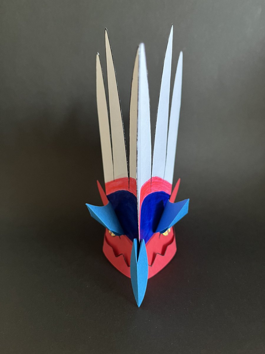 1 2 夏休みの工作()その2 進捗 紙を買わずにある材料でやってるので色が多少違いますが、頭部がほぼ完成。 頭の長い触覚つけると重くなりそうだなあという想像をしているところ そこは台座までつけてから着手 #ペーパークラフト #ポケモンsv 22/08/22 17:39