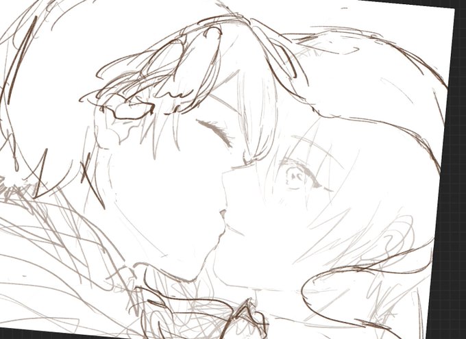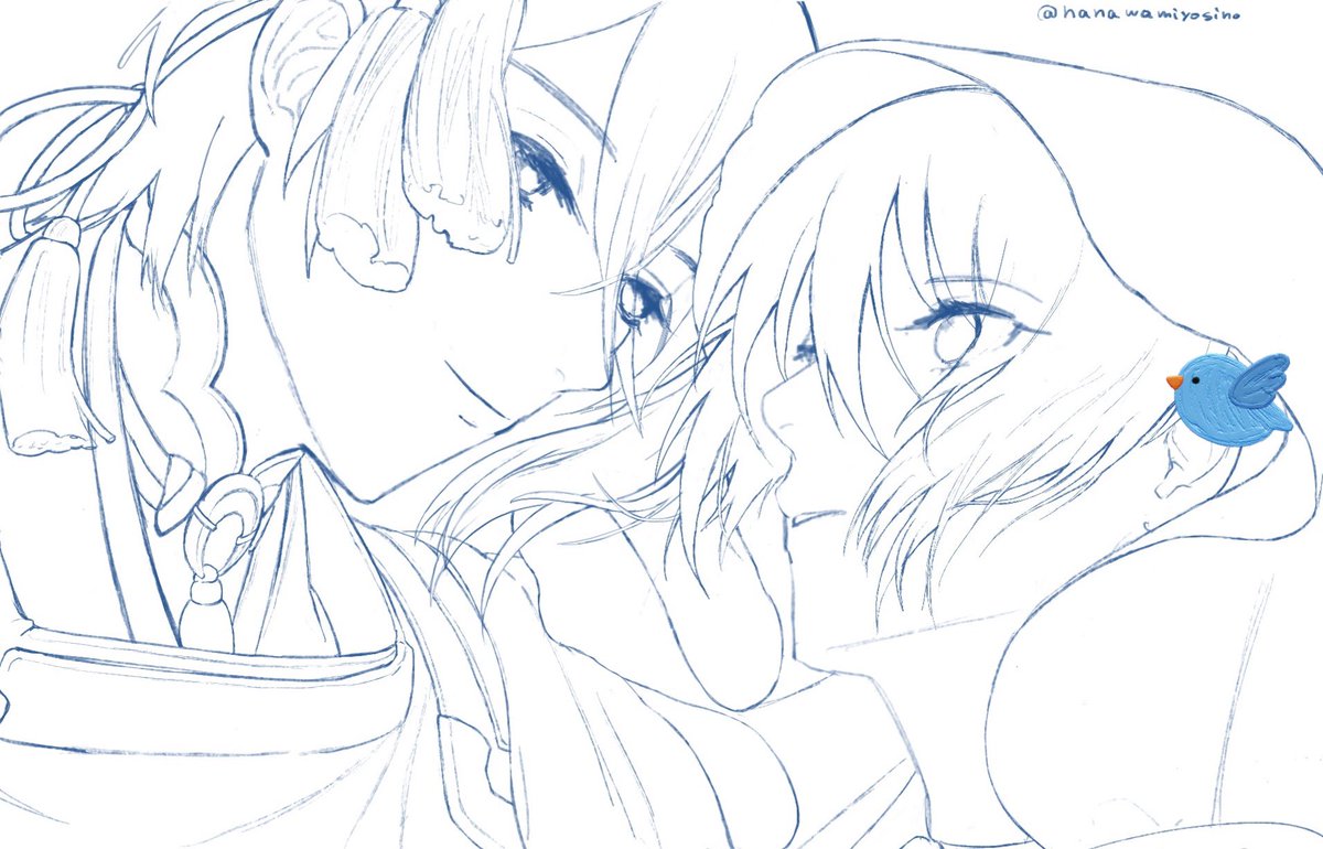 一部途中ですがみかんばの日(一ヶ月以内なら大丈夫なはず)の絵の線画〜 明日いろいろあるのでもう寝ないといけない…