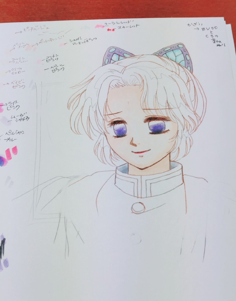0 3 大人の塗り絵。手持ちのマーカー(コピック・蛍光マーカー・100均マーカー・色鉛筆ナド)を使って混色しながら色を見つけて行く作業が楽しい(・∀・) #アナログお絵描き #鬼滅の刃イラスト 21/07/14 23:01