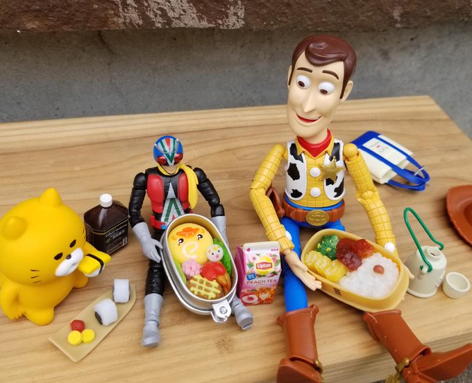 0 8 ウッディ、仮面ライダー、ノラネコぐんだんで一緒にお昼ご飯。 #藤井弁当 #おこさまべんとうマスコット #おむすびマスコット #ウッディ #仮面ライダー #ノラネコぐんだん #おもちゃ撮影会 #オモ写 #フィギュア撮影友の会 #リーメント #ガチャガチャ 21/06/06 13:39
