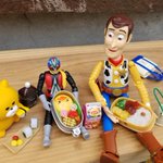 ウッディ、仮面ライダー、ノラネコぐんだんで一緒にお昼ご飯。 #藤井弁当 #おこさまべんとうマスコット #おむすびマスコット #ウッディ #仮面ライダー #ノラネコぐんだん #おもちゃ撮影会 #オモ写 #フィギュア撮影友の会 #リーメント #ガチャガチャ