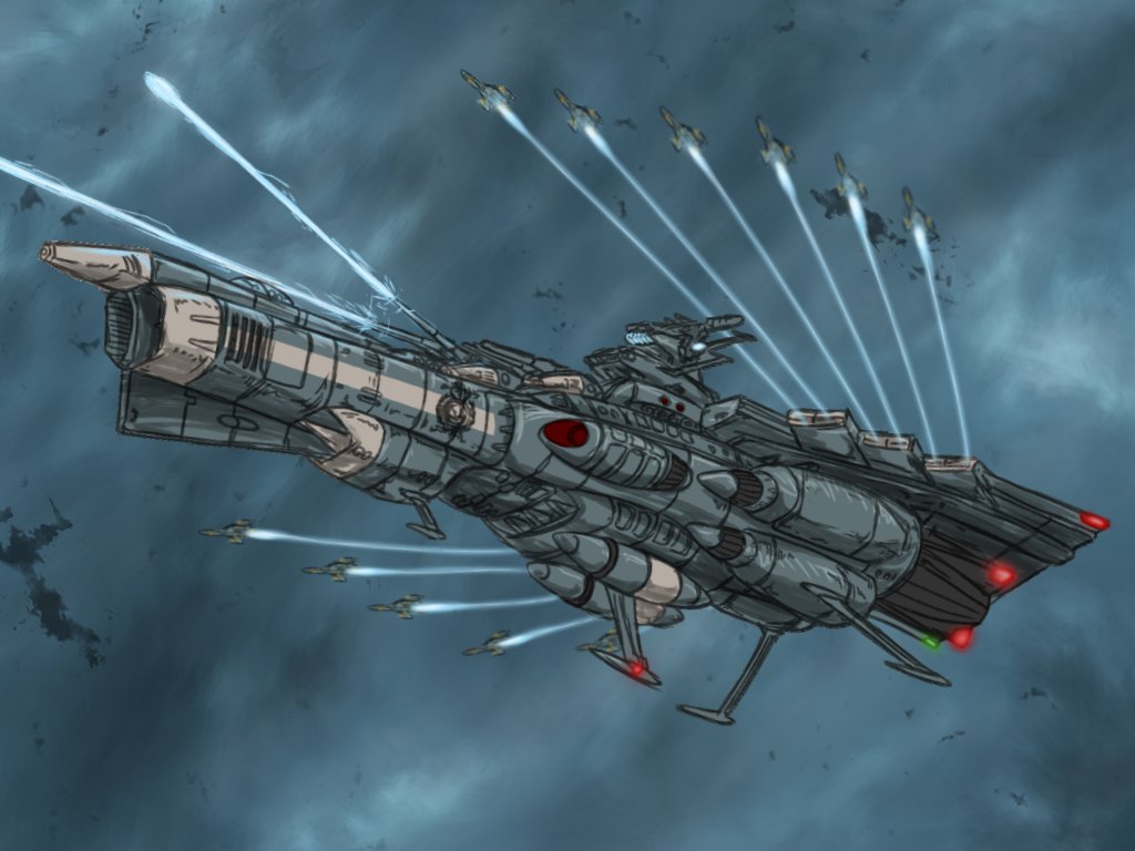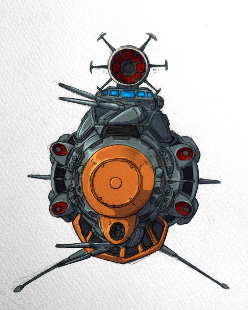 ごまもさん(@chubu_goma)のオリジナル艦、航宙打撃戦闘母艦「ハスター」を描きました #はんちょーの毎日イラスト