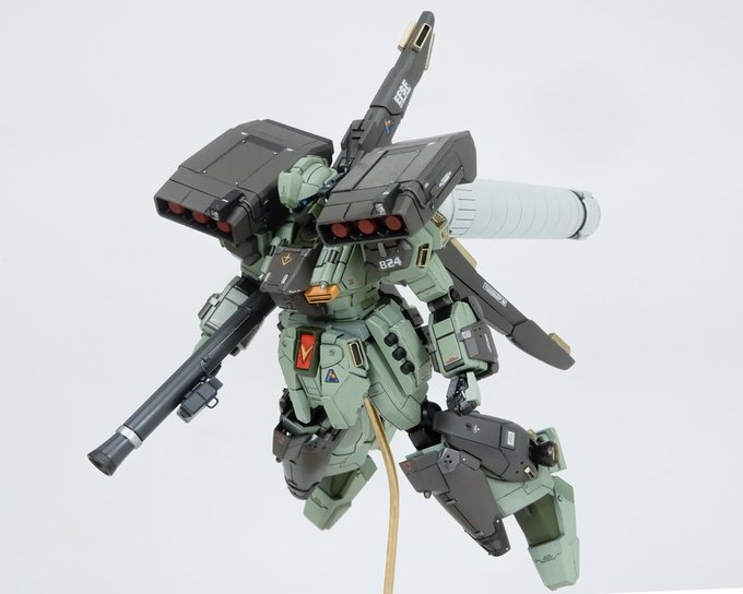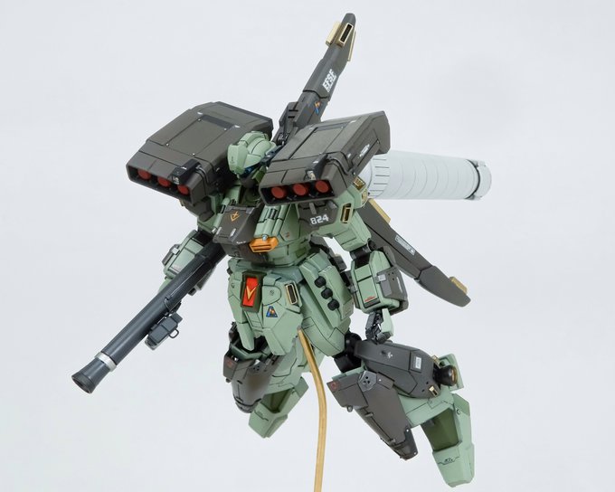 183 1036 改めてスタークジェガン完成です かんもれんでは「追撃」という題名で展示させていただきました 母艦キャロットからの出撃シーンを想定し、偽装貨物船に追いつくための使い捨てブースターを装備してます 劇中の機体なので全体の印象を合わせながらプロポーションやディテールをいじりました #ガンプラ 22/03/23 14:38