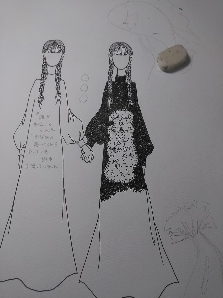 5月くらいに描いた絵。 #ペン画 #アナログ #絵と言葉 #三編み #かわい絵 #双子