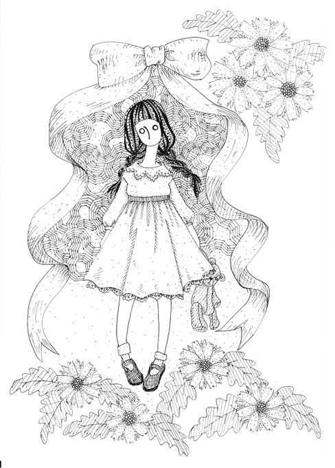 今さっき描いた落書きー #ペン画 #手描き #かわいい絵 #三つ編み #少女の絵