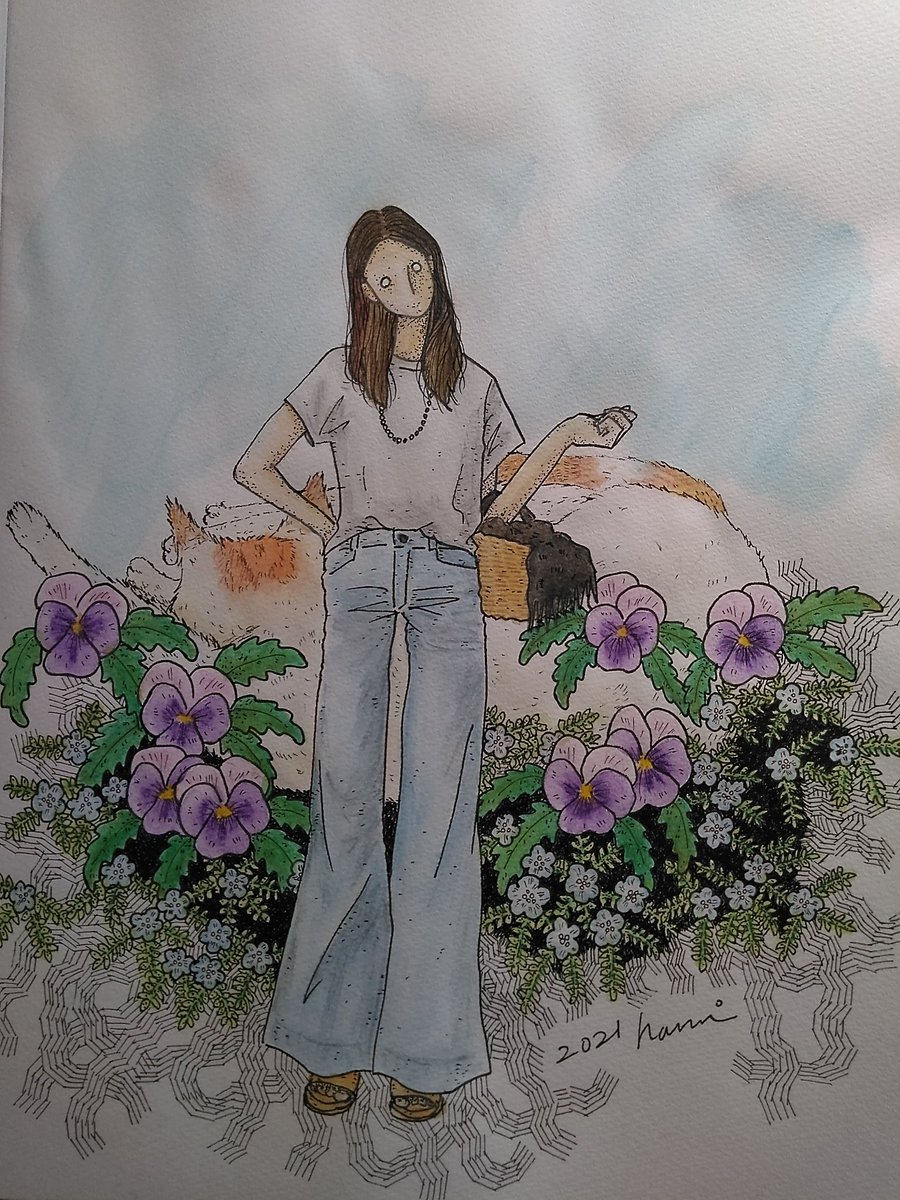 【飾らないキミがいい】 #ペン画 #アナログ #手描き #猫 #ビオラ #モネフィラ