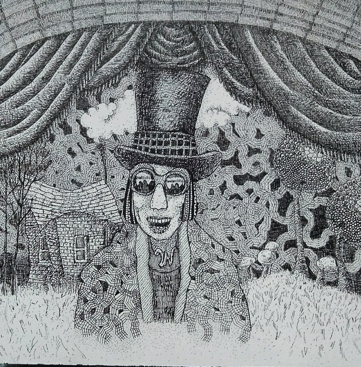 【Dear…シリーズ】 これが完成品。 #ペン画 #アナログ #手描き #絵画 #絵画のある暮らし #チャーリーとチョコレート工場 #ウイリーウォンカ #映画の絵 #絵