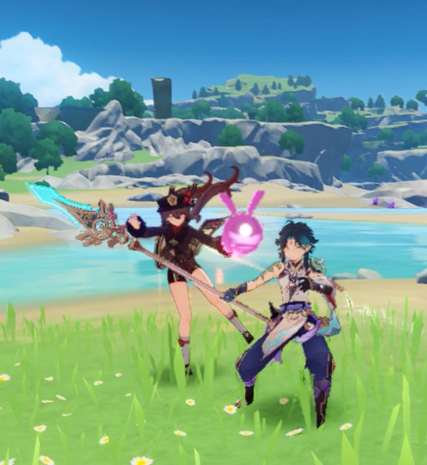 hu tao (@tsumeggii) froze mid-ult so i decided to pose but we look stupid 😭 #GenshinImpact #genshinimpactfanart