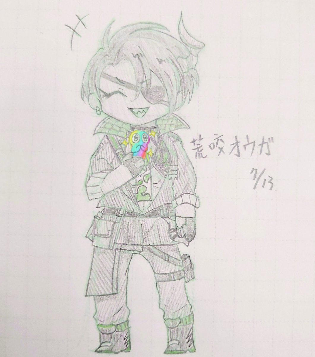 3 17 最近ハマった荒咬オウガです🐃 さっきスペースを聴きながら描いた💚 スペースめちゃ助かる~~ ありがとうございます☺ #オウ画 21/07/14 00:31