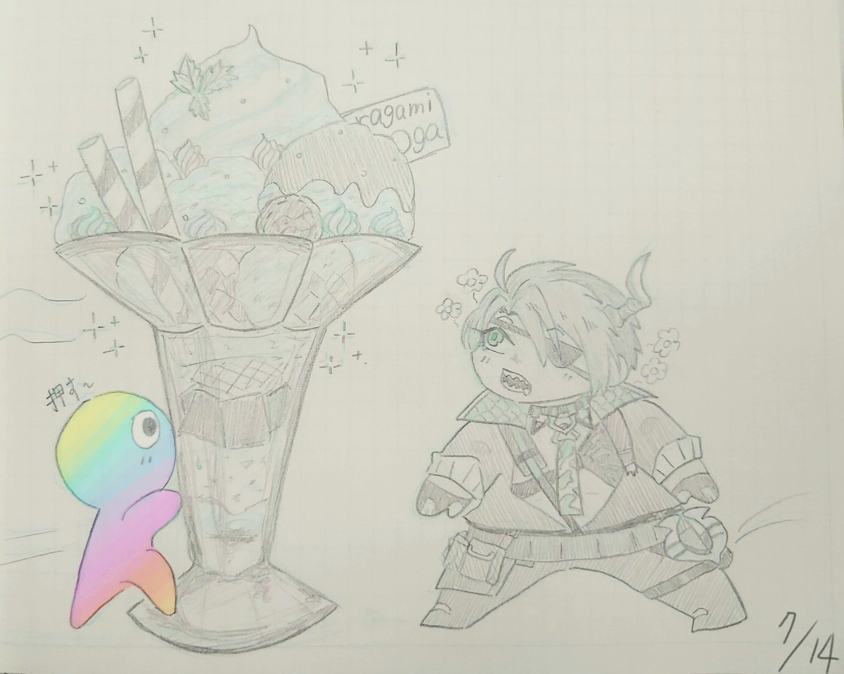 4 88 はい~チョコミントパフェです! チョコミントは苦手なんですけど オウガさんが好きだったら オマエさんがいっぱいあげる☺💚 #オウ画 21/07/15 04:12