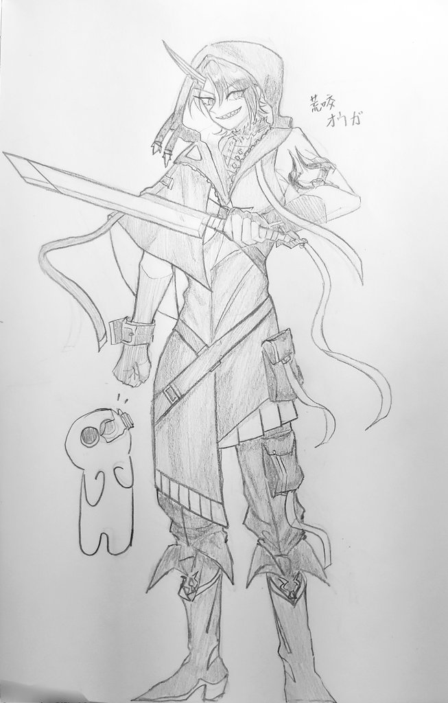 最近ハマった荒咬オウガです🐃 さっきスペースを聴きながら描いた💚 スペースめちゃ助かる~~ ありがとうございます☺ #オウ画