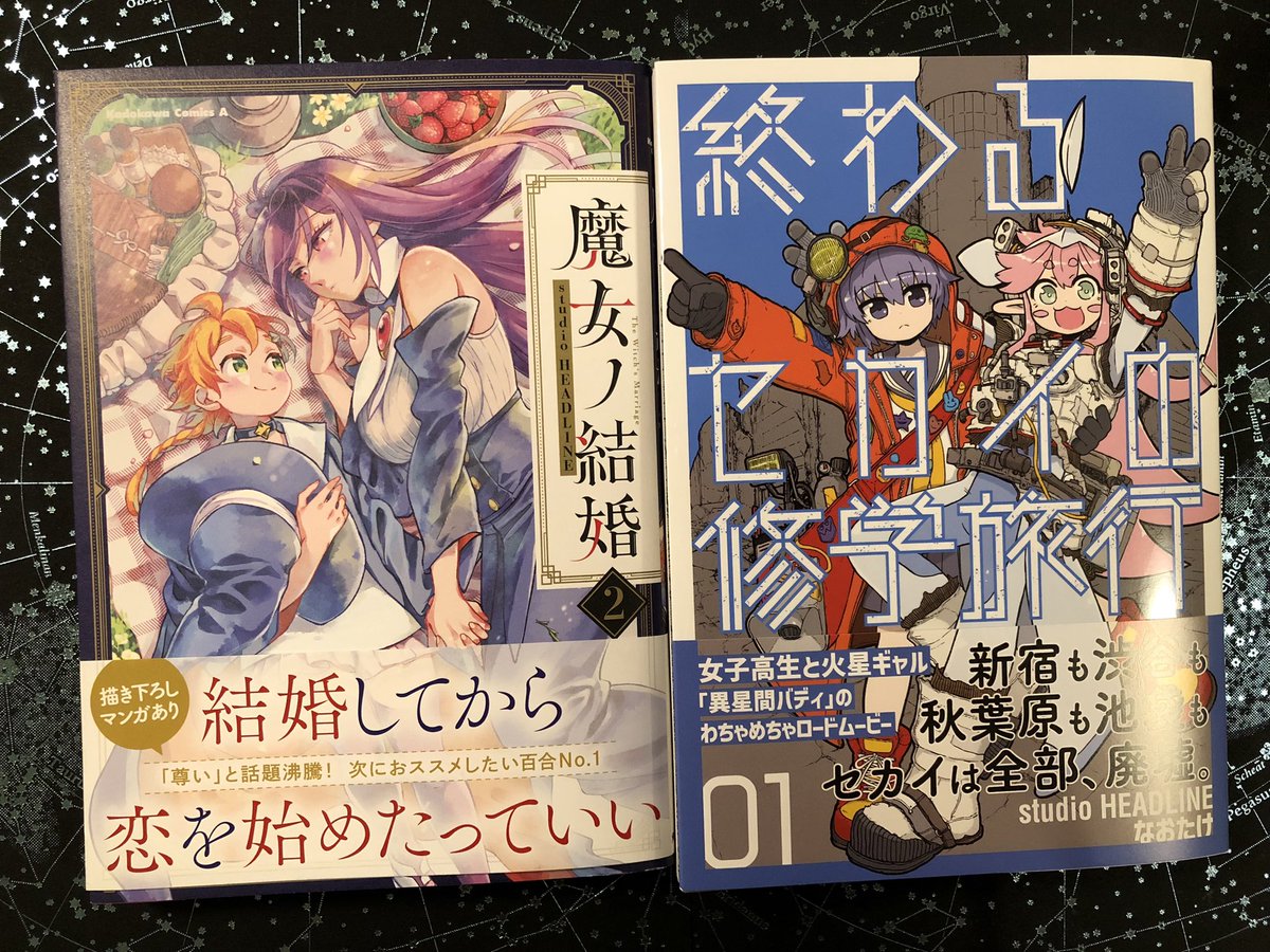 チーム作品「魔女ノ結婚」「終わるセカイの修学旅行」本日8/10に単行本2冊同時発売となりました! 両作品で初稿ネーム数本と、魔女婚単行本の方で衣装デザインカット10P描かせていただきました。 お手に取っていただけましたら嬉しいです。よろしくお願い致します! twitter.com/headline0003/s…