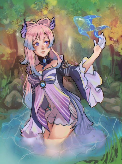 Kokomi my luv (ALSO I MADE A BACKGROUND???WROW) [shares and retweets are appreciated!🌼] - #kokomi #kokomifanart #GenshinImpact #artph #genshinimpactfanart