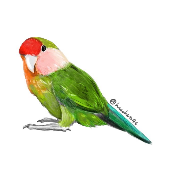 やっぱり一回影つけてからの方がいい感じになるね 結構可愛くかけた気がします…! #イラスト #鳥 #コザクラインコ