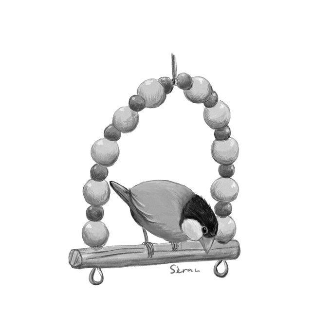 明日は文鳥の日!今日は鉛筆画風に仕上げてみました。友人の文鳥お気に入りのおもちゃを添えて… #イラスト #文鳥
