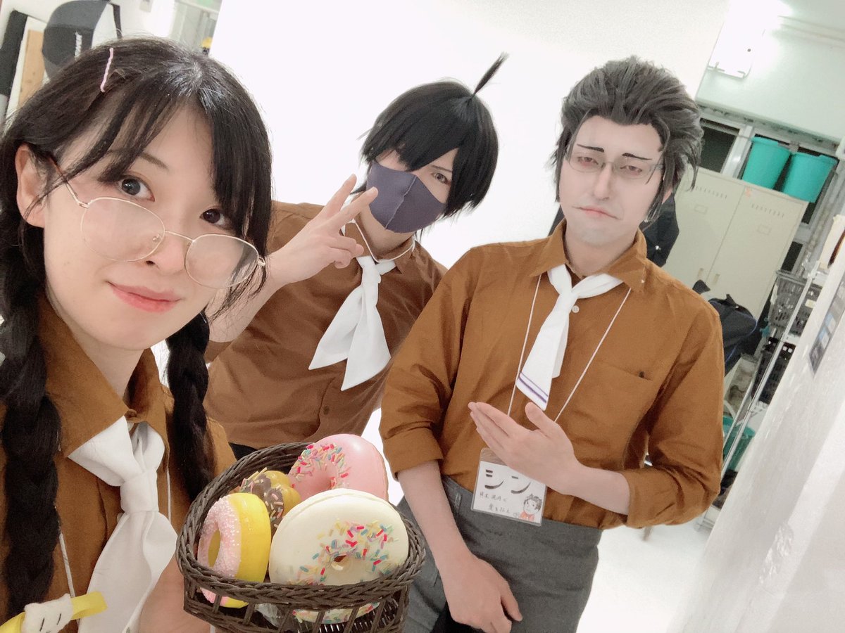 貼るの忘れてた 貝木さんがドーナツ持ってきてくれてたから、ストロベリーの可愛いポン・デ・リングをいただいた! チョコレートとカラースプレーのついたポン・デ・リング、キーホルダーで持ってるよーー! 金を払えと言われるーーー💦 #富士コス #hanekawayaka