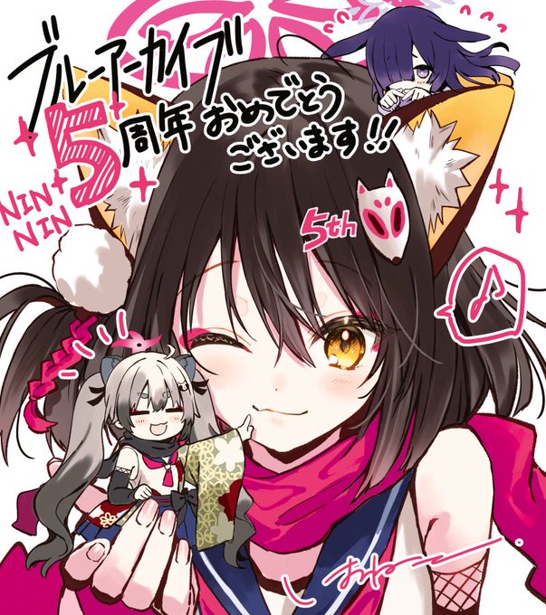 遅ればせながらブルーアーカイブ5周年おめでとうございます!今年もイズナの色紙を描かせていただきました。沢山の方に見ていただけて光栄でした🦊