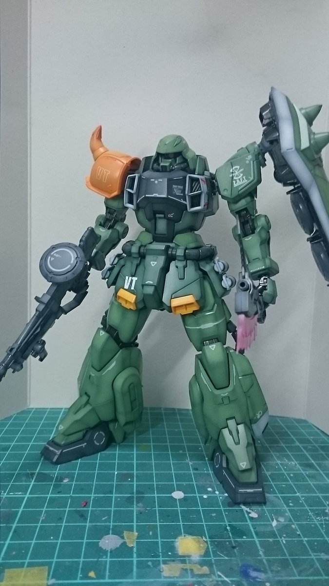 MGジン、めっちゃええやん! 細かい箇所で調整したいけど、素組でも充分満足出来る。 ミゲル機だとありきたりなので、バスターソードを作ってイライジャ専用ジン改に仕上げる! モノアイはクリアパーツに変更 #ガンダムSEED #ガンプラの画像貼るとRTされると聞いて