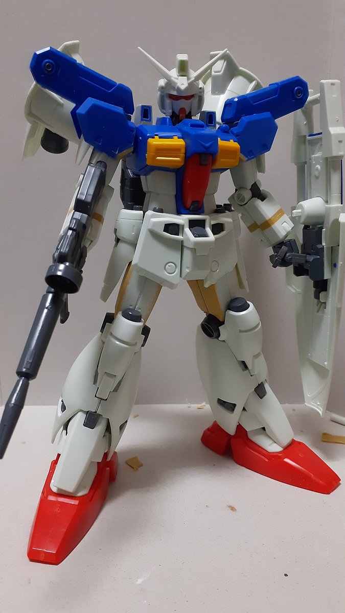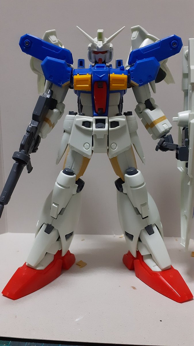 #ガンダムストームブリンガー 全体の配色とバランスを確認する為に一度組み上げ、アンクルガードがスネに干渉が見つかったので足首部分を1mm延長して対応。 いや~、ええ感じでしょ!(ドヤァ #ガンプラの画像貼るとRTされると聞いて #ガンプラ好きと繋がりたい