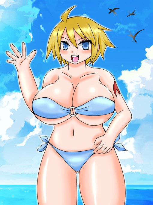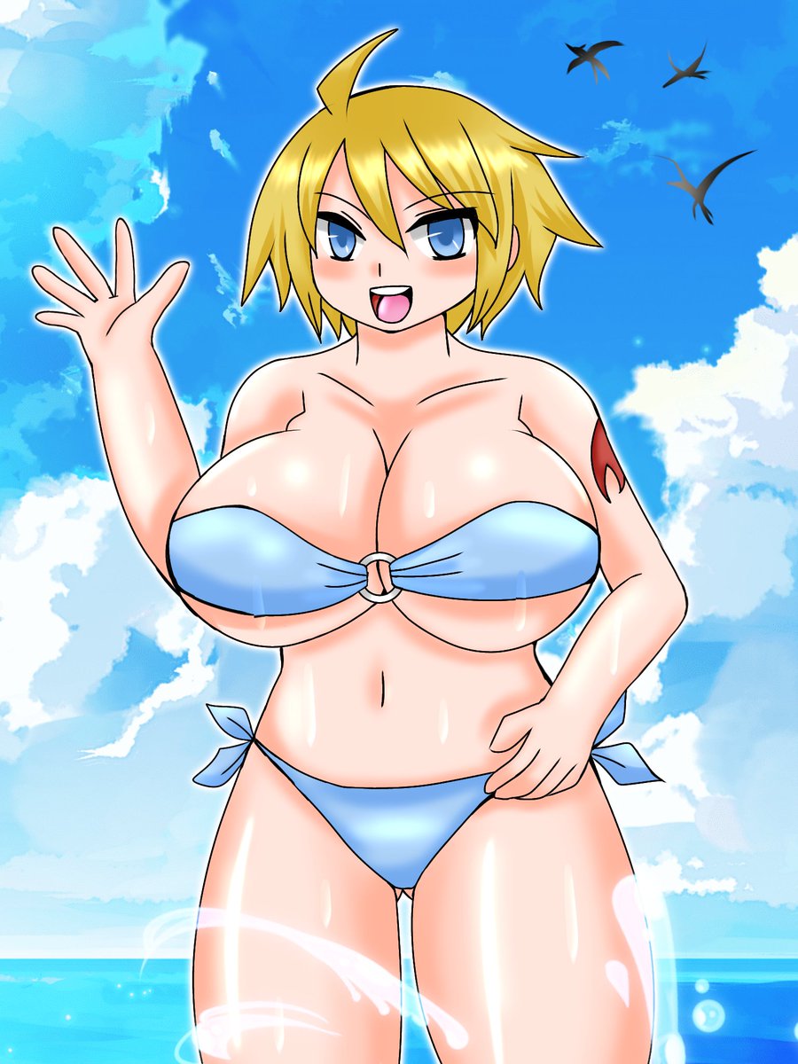 #水着 #ビキニ KEIさん(@KEI17516187 )のオリキャラのジュリアさんの水着バージョン。 遅くなりましたが描かせていただきました。 二枚目は汗と水差分。