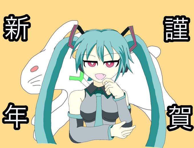 友達に送った年賀イラスト その1 初音ミク ちょい自分の好きな感じに描いてみた (目や八重歯等) #初音ミク