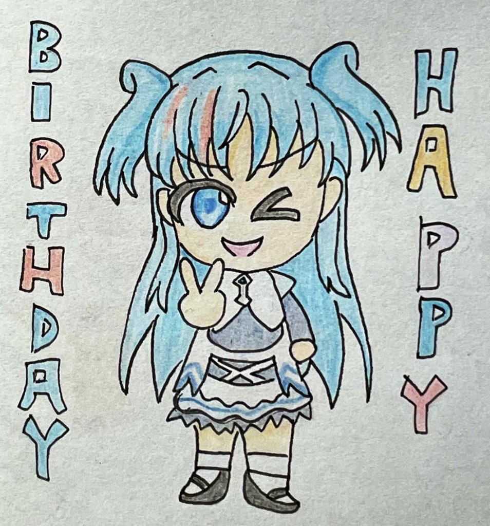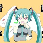 0 1 友達に送った年賀イラスト その1 初音ミク ちょい自分の好きな感じに描いてみた (目や八重歯等) #初音ミク 23/02/08 22:08