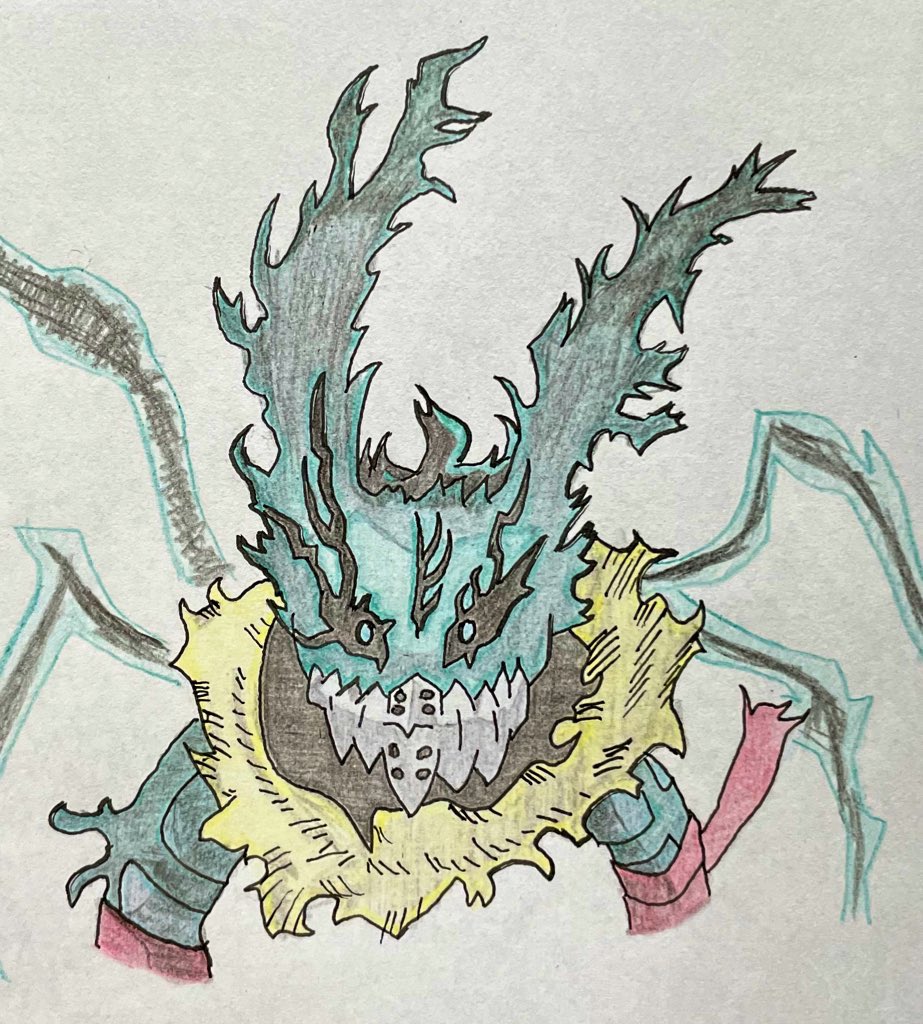2 4 毎日描く習慣1380日目 落書き マグマモンスター やや可愛げのある顔 23/06/26 23:05