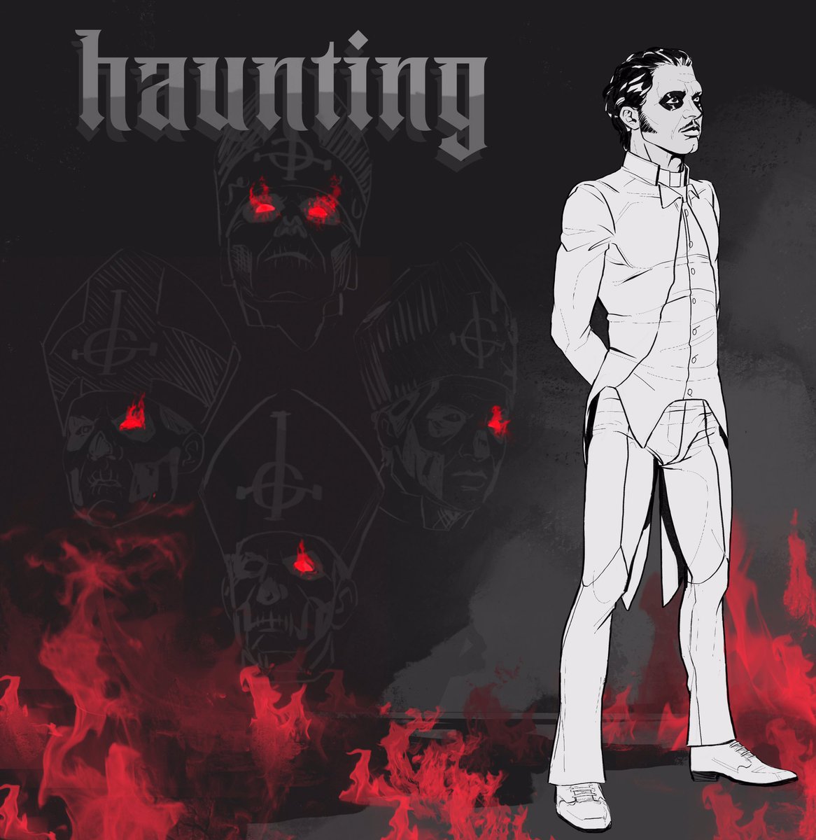 💫[Day 31: Revelation]💫 I am so proud to show the last piece of art for this year’s Inktober challenge, on which I worked together with a very talented friend of mine (@r.nooir on IG!) I wish everyone a very Happy Halloween!! ❤️🔥 #ghosttober #inktober #inktober2021 #ghostband