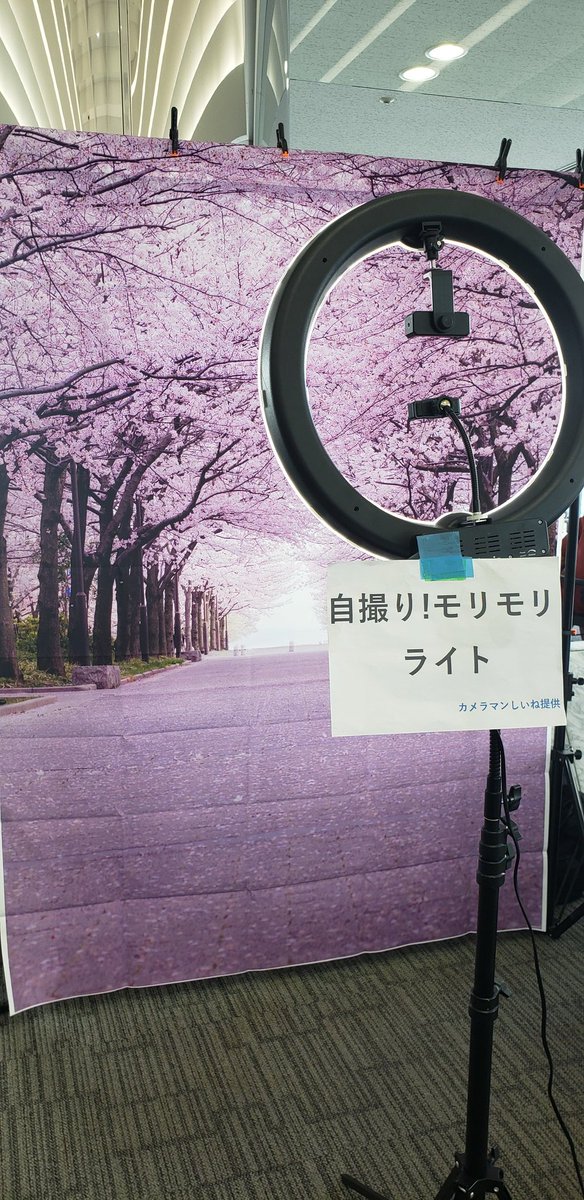 #エアてふて 桜が終わっても大丈夫! しいねブースでは桜で自撮り出来るよ😃もちろんみんな大好きリングライト完備! #コス博