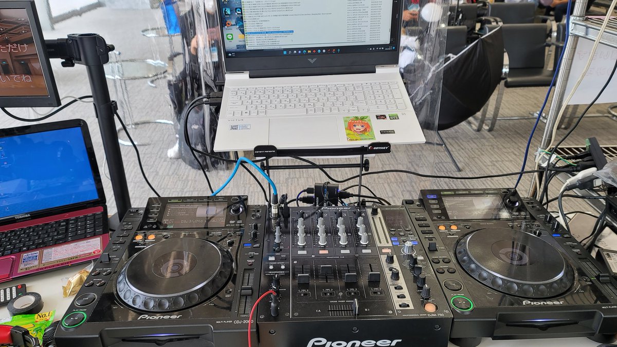 となりで夜のコスプレ博お疲れ様でした! ソロ大好きなしいねさんは1人で設営して1人でVDJして6時間30分ぶっ通しで会場BGMさせて頂きました☺️USB充電コーナーやバッテリーレンタルやリクエスト対応したり楽しかった! みなさんも最後までお付き合い頂きありがとうございました! #となコス #コス博