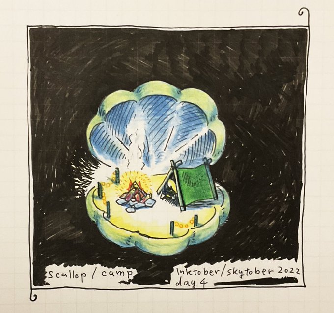 2 8 04. Scallop / キャンプ Skyの貝殻好きなんよなぁ #inktober2022 #skytober2022 #sky星を紡ぐ子どもたち 22/10/04 23:40