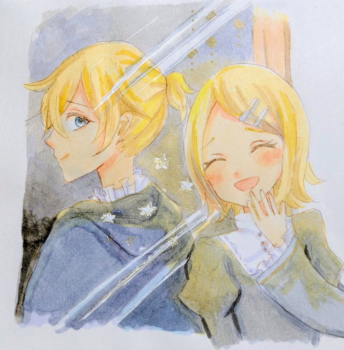 「魔法の鏡」 #イラスト #アナログ絵 #鏡音リン #鏡音レン