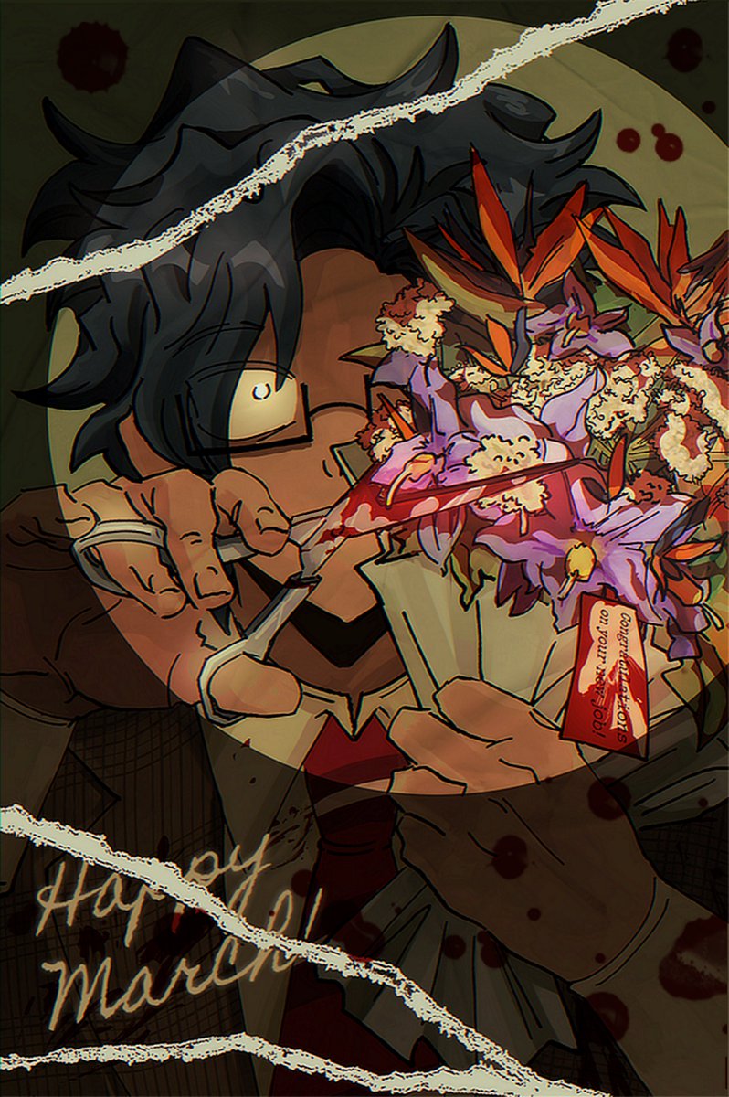 💐✂️💼 HAPPY MARCH 💼✂️💐 (Protag themed floral illustration to celebrate the month !! Thank you for those who voted in the RDT dev discord server !! discord.gg/Jmpg9PXJP7) #ElevatorHitch #엘베힛치