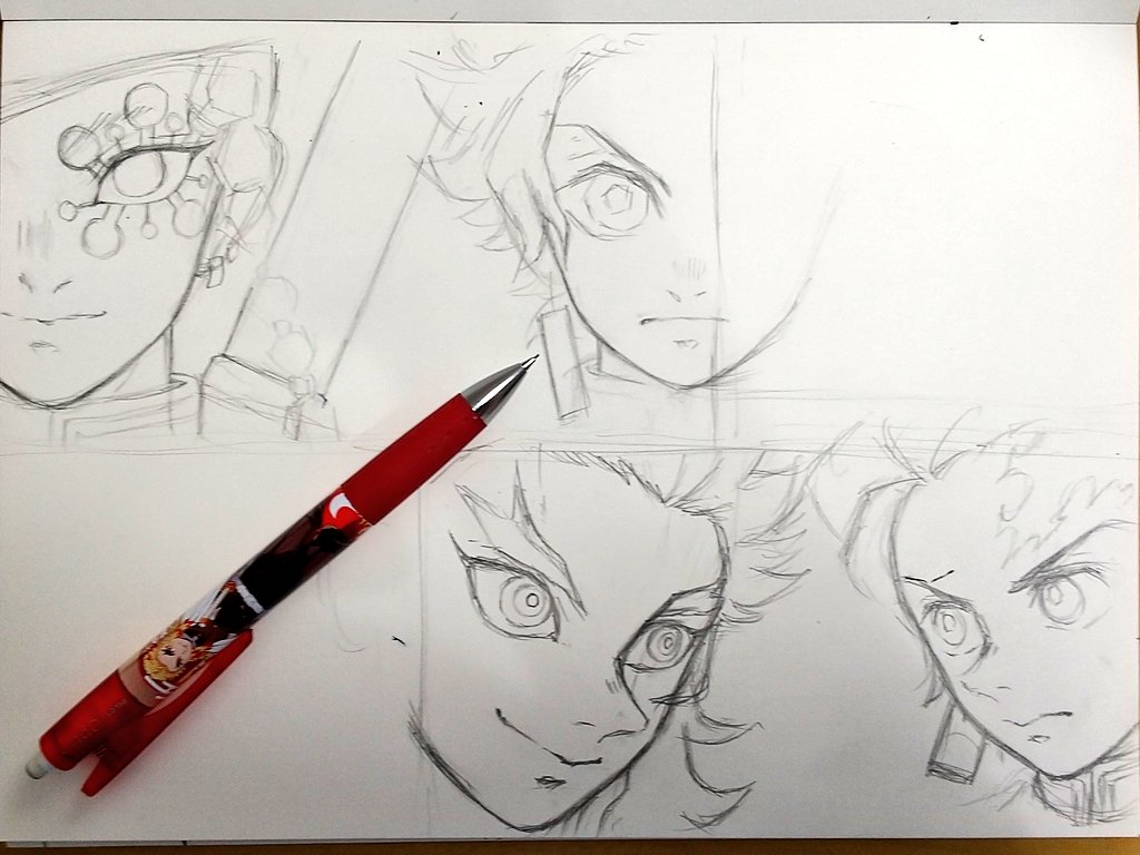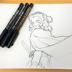 原画展に行って、アナログやっぱりいいなあ、と思い、20年ぶりぐらいにGペンでラクガキお絵描きしました。するする筆が進む。いいわ、この感じ。 適当な紙使ったらにじみまくり😅 #鬼滅の刃ファンアート #鬼滅の刃イラスト #煉獄杏寿郎