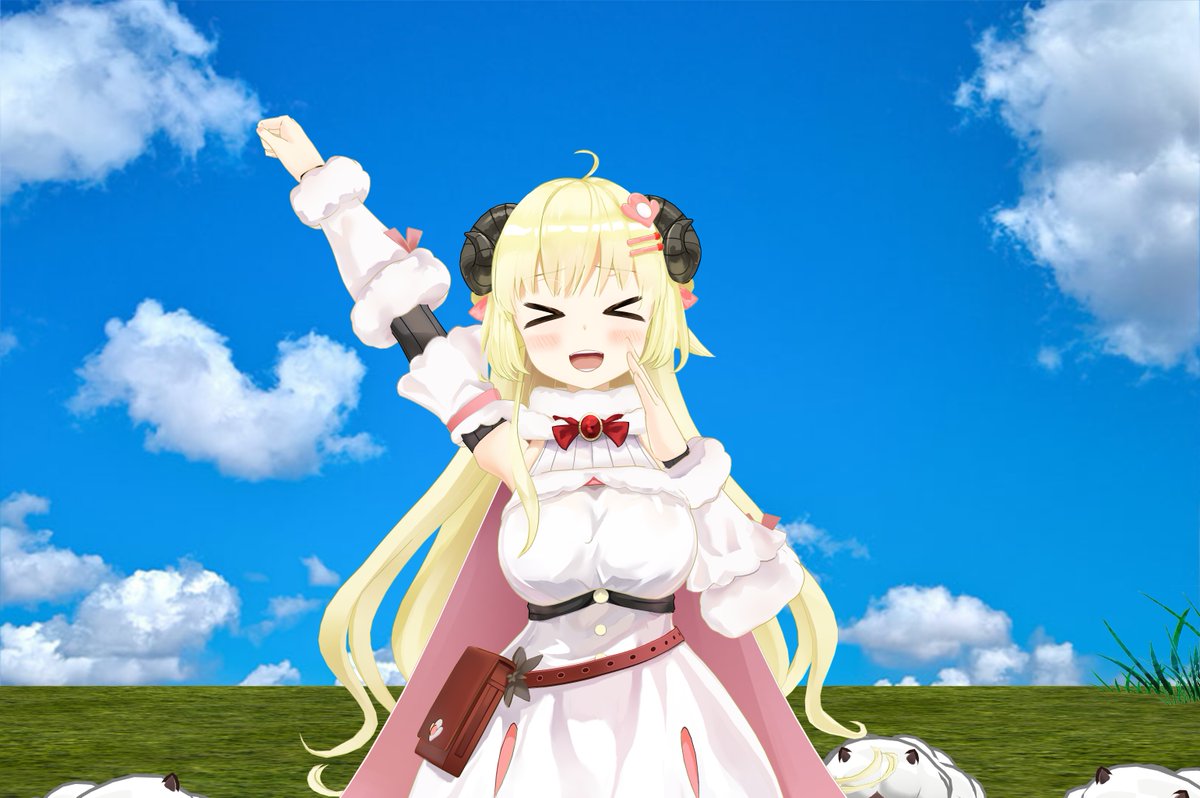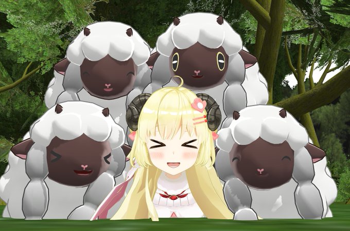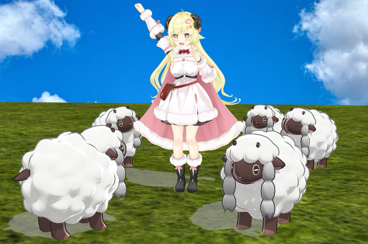 #つのまきあーと ウールーに紛れるわためぇ お借りしたモデル ・ホロライブ公式 角巻わため ・白羽式ウールー ・NuKasa式キノコのある森