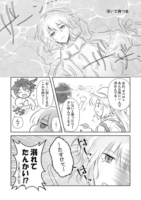 オベロンくん水着で海来ておきながら泳げなかったらかわいい でも浮くのは得意 虫だからね…