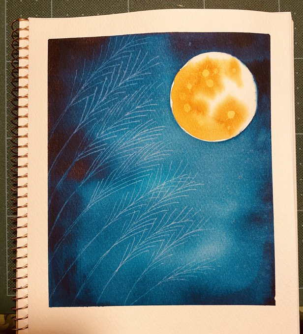 1 1 Day2 #満月 #中秋の名月 #fullmoon #Inktober2020 #襟裳岬 #ErimoNiebiski #KWZink #竹軸ガラスペン #佐瀬工業所 #ガラス棒 #平筆 #マスキングテープ #インク水彩 20/10/03 00:24