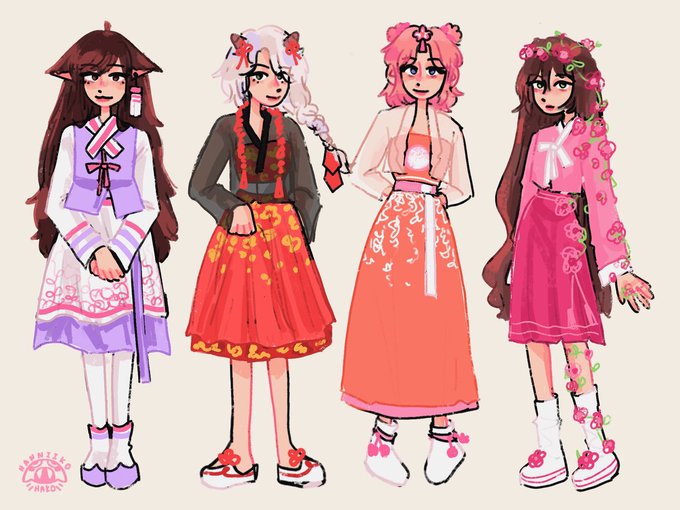 설날 🌺 Happy lunar new year everyone! #tinakittenfanart #CaptainPuffyfanart #nihachufanart #hannahxxrosefanart