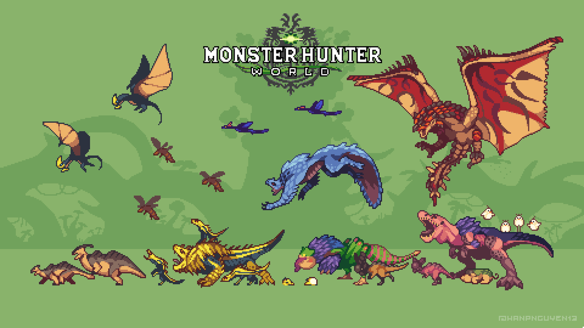 First one done. It's not perfect but I'm proud af. #monsterhunter #MonsterHunterWorld #pixel #pixelart @monsterhunter