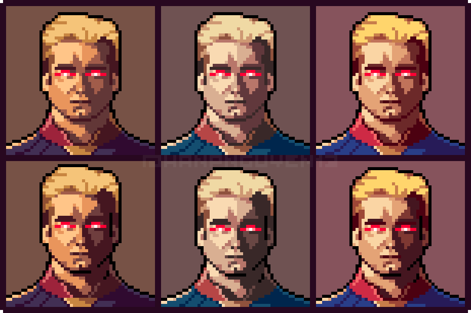 Just finished @TheBoysTV and this dude is instantly my favorite. Was super hesitated on which palette to use so I guess I'll upload them all #pixel #pixelart #Homelander #TheBoysTV (reupload bc twitter butchered the png).