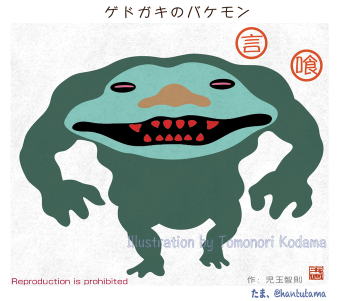 1 1 🎃おばけ・妖怪・もののけ図鑑👻Yokai ゲドガキのバケモン 出没場所:長崎県松浦郡 子が激しく夜泣きし、父親が「そんなに泣くとゲドガキのバケモンに喰わすぞ」と脅すと、「ならば俺に喰わせろ」と外から大声。成長後、子は喰われた。 #妖怪 #イラスト #Illustration #Yokai #Japanese #monster 23/04/02 20:09