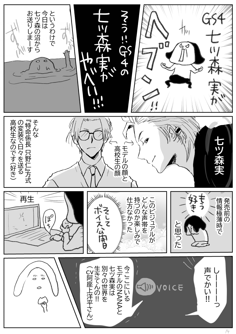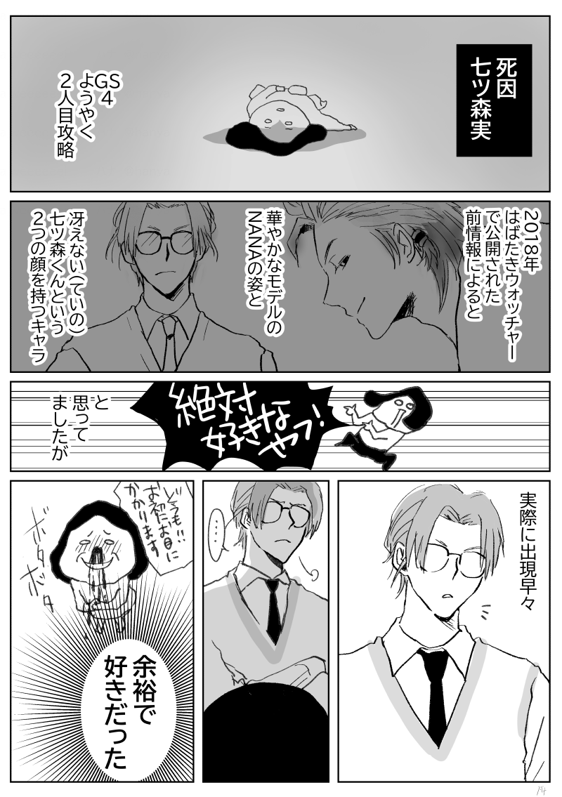45 208 去年の末頃に日常アカでのせてたGS4の布教漫画 せっかくなので今こっちで2つ流しますね 見たことある人がほとんどだろうけどGS4のピンクの人・七ツ森実ほんとやばい 22/09/01 16:29