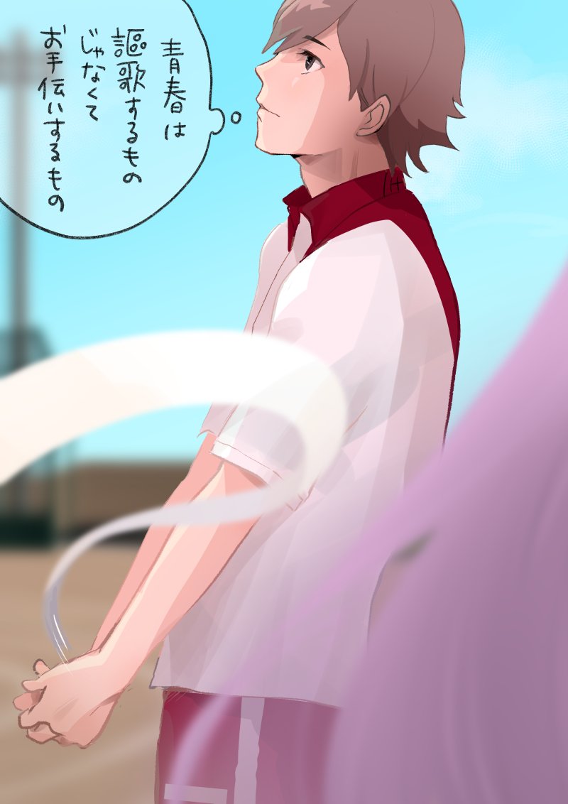 漫画の背景描きながら思ってた。 4のはじまり。幼馴染ならあの朝、待ってるのが颯砂くんの可能性もあったのかもなー…というわけで、肩の柔軟をしながら待つ颯砂くん。