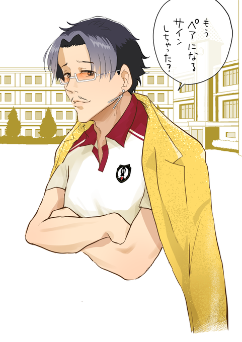 61 591 身長変化、玉緒くん181-181-181&聖ちゃん170-171-173。紺野玉緒(1年)くん入学早々運動部に勧誘されたんじゃないかなと思って描いた。 22/07/27 22:19