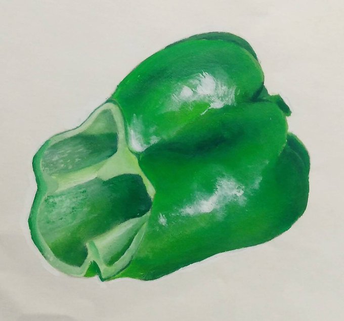 2 59 はるか昔描いたピーマンを発見!!(⌒∇⌒)💦 #イラスト #アクリル絵の具 22/06/14 20:40
