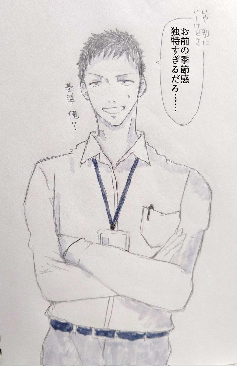 同僚から「社が袖めくらないようになったら秋だなって実感する」と言われてて欲しい(妄想甚だしい) そしてこういう返答をしてる推しが居てほしい(妄想甚だしい) #社築納品物