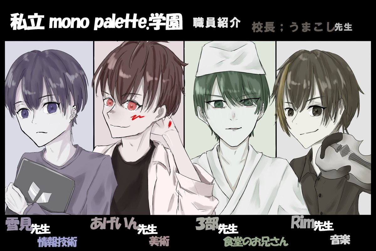 1 4 名門活動者養成学校 ✨モノパレ学園✨ ⚠️酷い捏造 ⚠️何でも許せる方 ⚠️ごめんなさい #palette_paint #あげいん展 #雪見ュージアム #りむりむ展覧会 #サンブニャンの餌 22/06/08 17:19