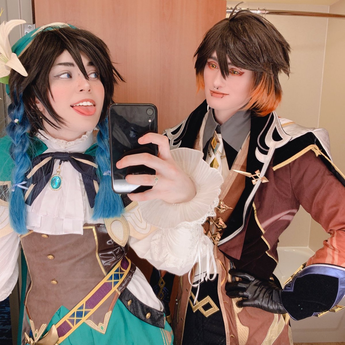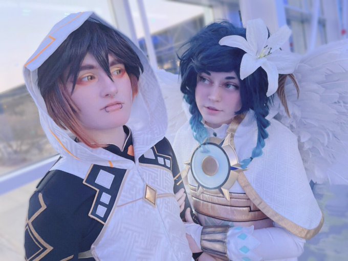 zhongven nation??? can you hear me???? i-is this thing on… #zhongven #zhongli #venti #zhonglicosplay #venticosplay #genshinimpact #genshinimpactcosplay
