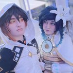 “Later, the stone replied. It dabbed its face with its handkerchief, saying: Your performance was indeed unmatched throughout the land. But the next time you get drunk and pour wine on my head, I shall be quite angry.” #zhongven #venti #zhongli #venticosplay #zhonglicosplay