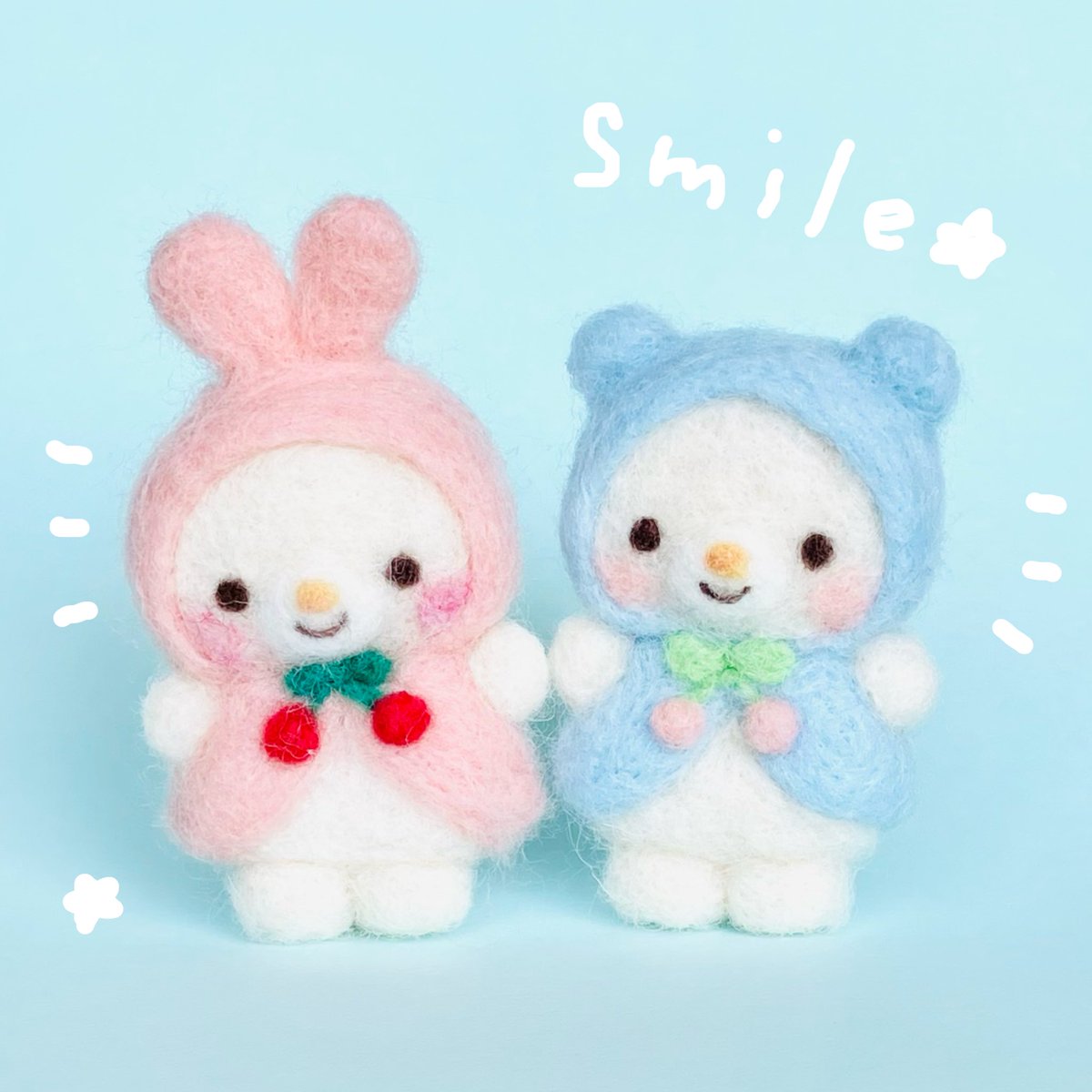 今日もニッコリ🐻🐰💓 みなさんにとって、 良い1日になりますように✨ #ハンドメイド好きさんと繋がりたい #羊毛フェルト #ぬいぐるみ ✳︎minne✳︎ minne.com/items/29145084